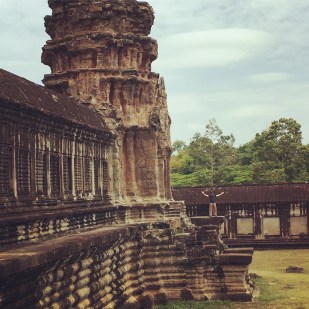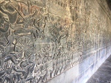 Hanging out at Angkor Wat.The entire outer wall was covered in these bas-reliefs (raised carvings that give that cool 3D look).
